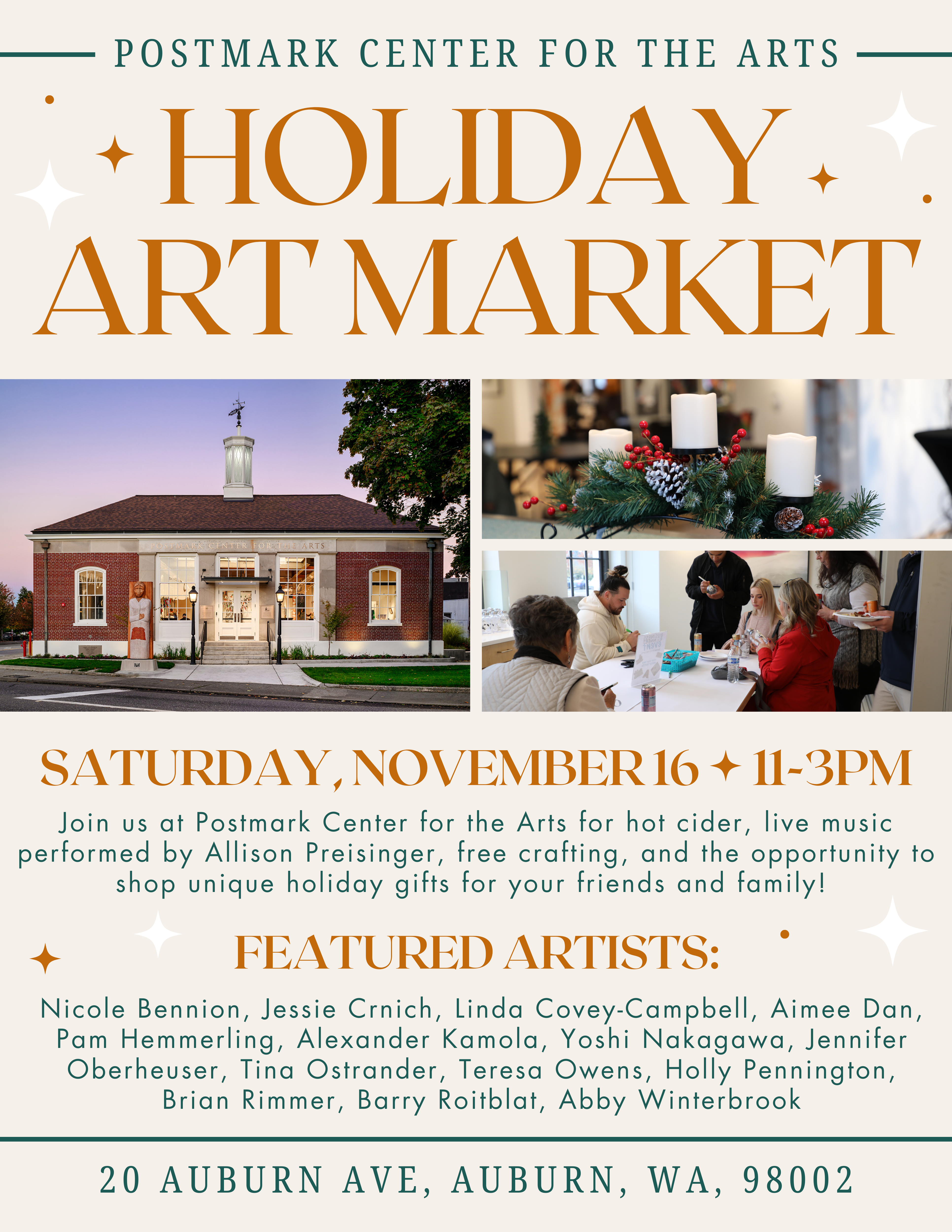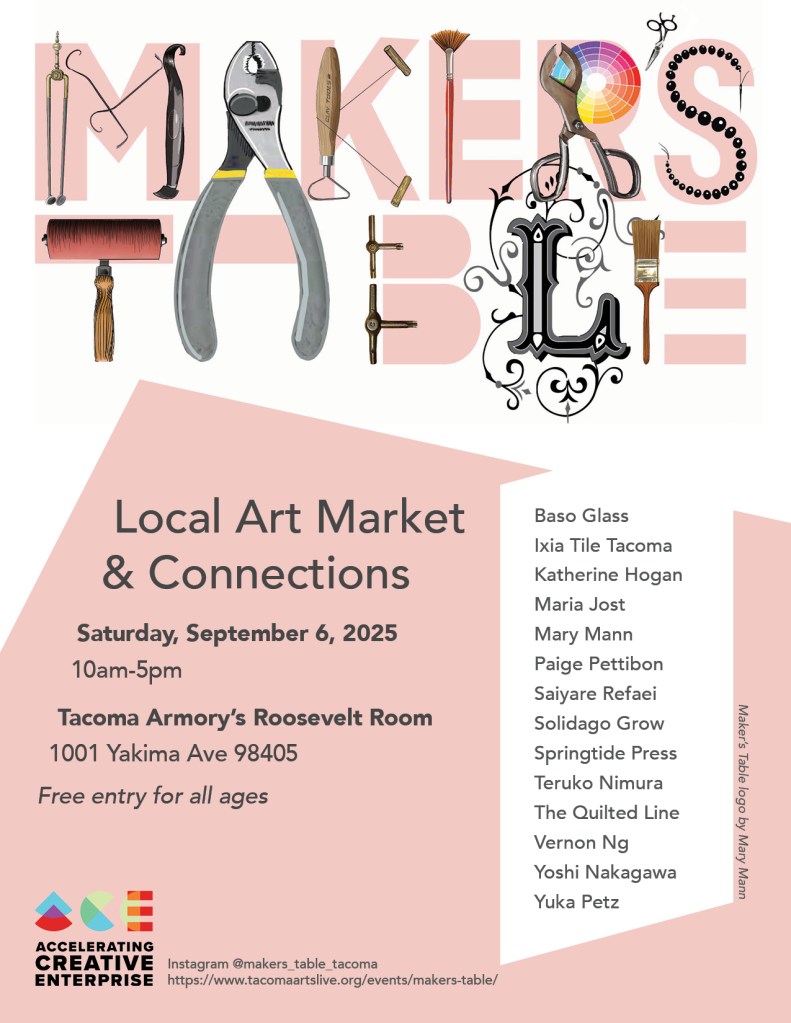 You’ll find affordable ceramics, fiber arts, glasswork, jewelry, original prints, paintings, wire sculpture, and works on paper at the Maker’s Table! Free entry for all ages, the event features thirteen South Sound artists selling their artwork and connecting with the community: