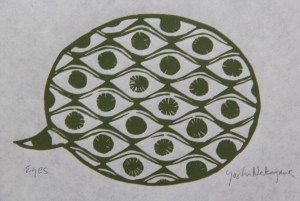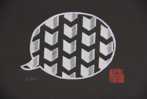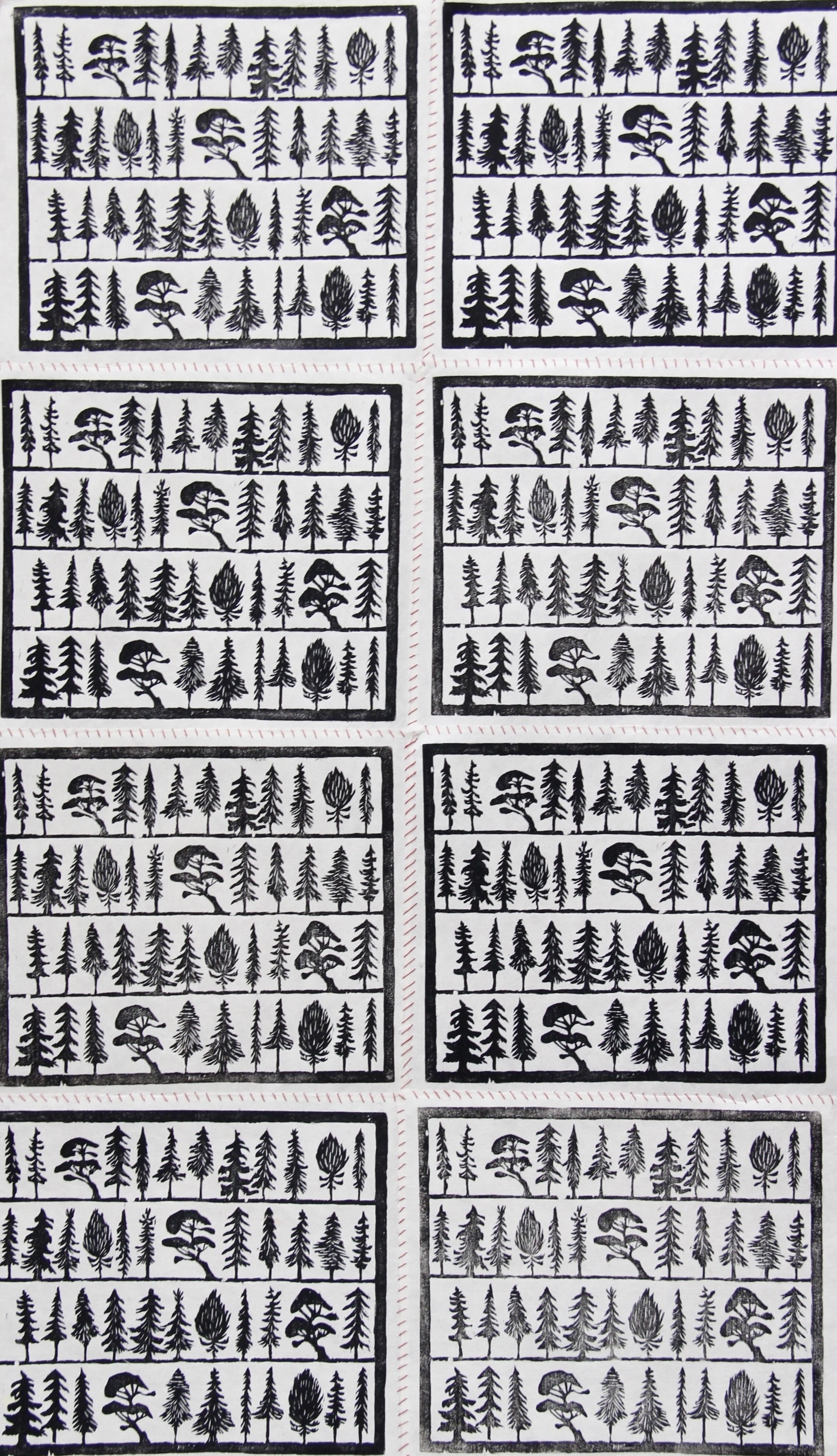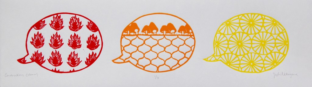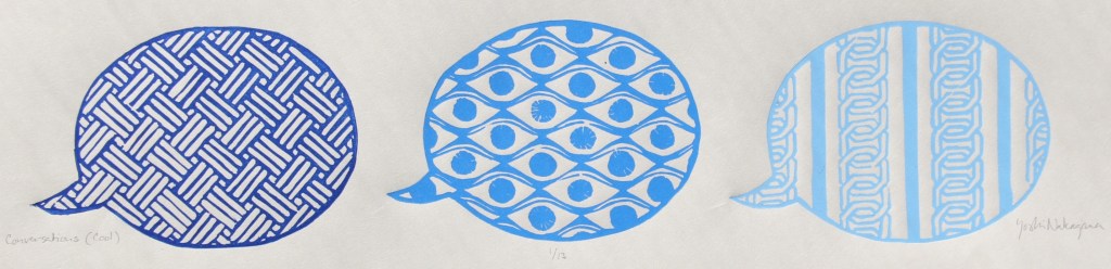 2023Conversations (Cool) Linocut 15×3.5 in 2022 Edition size: 13Conversations (Warm)