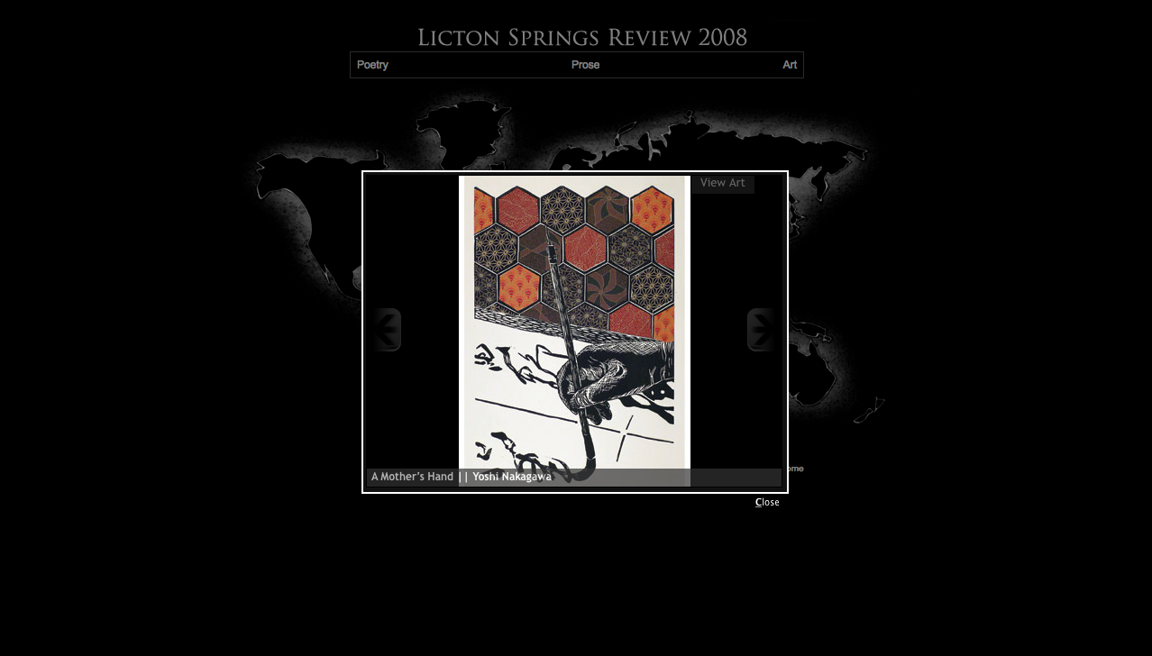 Licton Springs Review, Literary Magazine, North Seattle Community College, 2008. http://lsr.northseattle.edu/back_issues/2008/