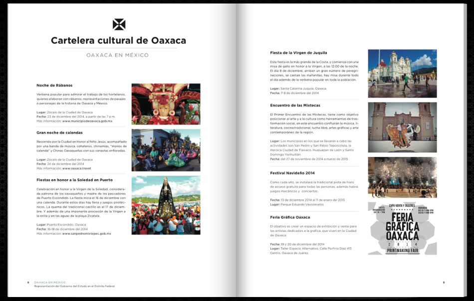 Oaxaca en México, Cultural Listing of Oaxaca, State Government Representation in Mexico City, pg. 9, December 2014. http://oaxacaenmexico.link/201412/#p=8
