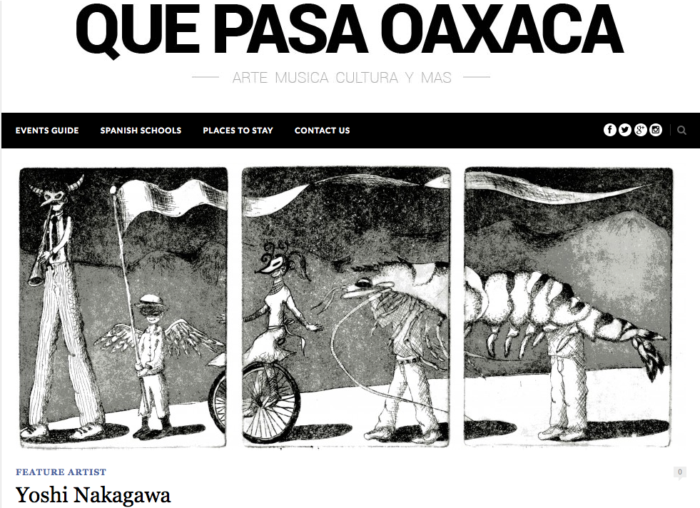 Rebecca Bailey, “Yoshi Nakagawa,” Featured Artist, Que Pasa Oaxaca, Oaxaca de Juárez, México, 18 November 2013. http://quepasaoaxaca.com/yoshi-nakagawa/