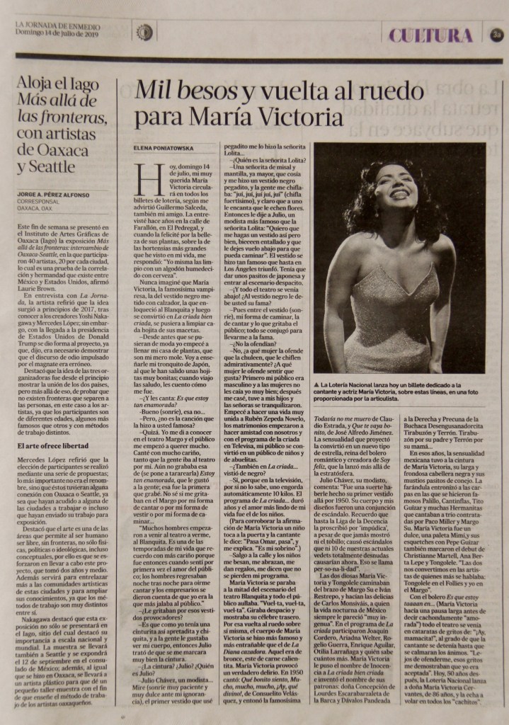Publication: An article of Beyond Borders: Oaxaca-Seattle Exchange in Mexico City’s La Jornada, 14 July 2019, Culture 3a, by Jorge A. Pérez Alfonso