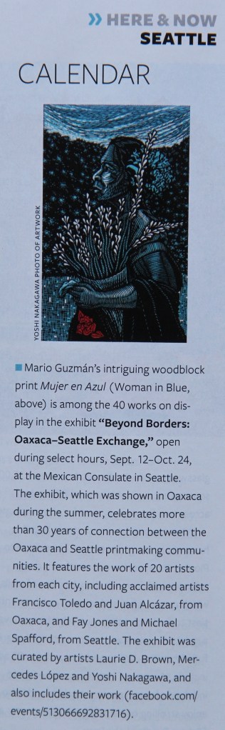 Publication: Beyond Borders: Oaxaca-Seattle Exchange, June 2019, book printed at Carteles Editores, Oaxaca de Juárez, Mexico.