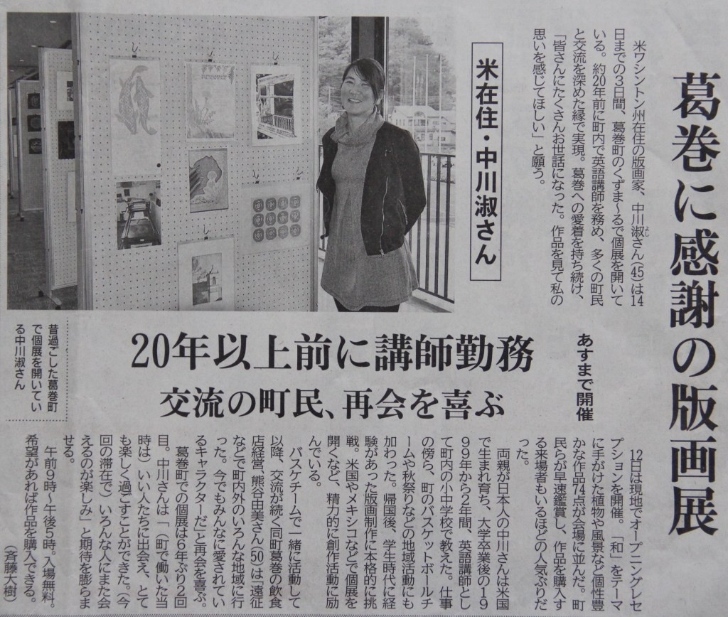 Norma Lisbeth Mejía Reyes, “Muestra obra gráfica la artista Yoshi Nakagawa,” Art & Culture, El Imparcial, Oaxaca de Juárez, México, 10 March 2016. http://imparcialoaxaca.mx/arte-y-cultura/9bo/muestra-obra-gráfica-la-artista-yoshi-nakagawa