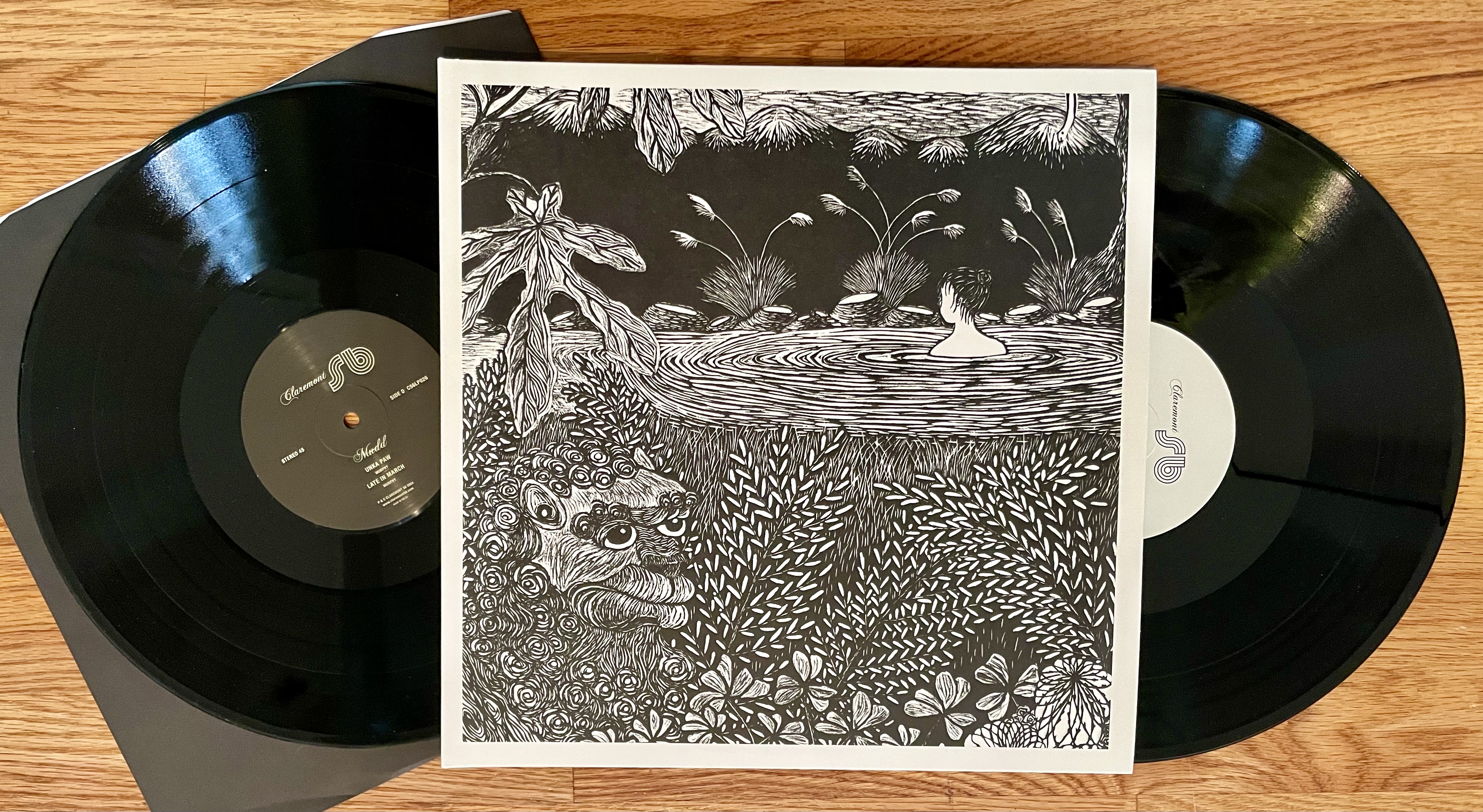 Publication: Claremont 56 from the UK presents a new LP release by Mudd: In the Garden of Mindfulness. Cover woodcut by Yoshi Nakagawa. claremont56.com 2024